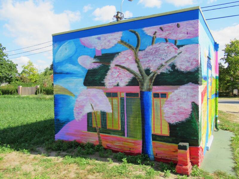 Dezelfde plek als locatie 11, maar dan aan de oevers van de Leie staat een nutskast.